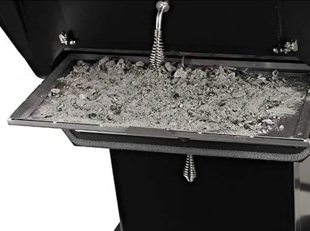 The two front-loading doors let you add charcoal or wood chunks or redistribute hot coals via the upper door without removing a cooking grid. Ash falls into the pan which slides out through the lower door for easy disposal.