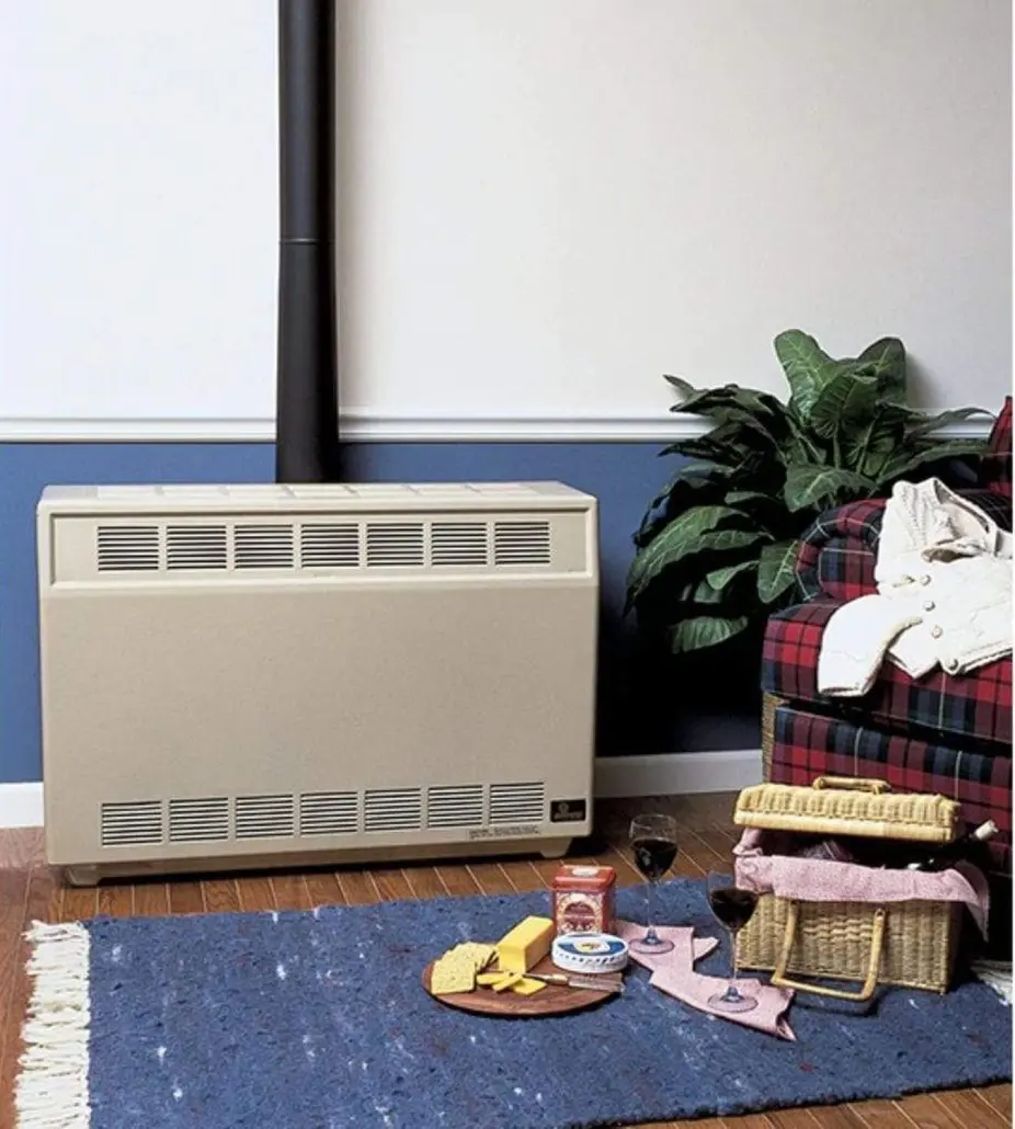 Each unit vents with a standard vent pipe. The curved combustion chamber design minimizes noise, while the burner ignites the gas immediately as it enters the burner port.