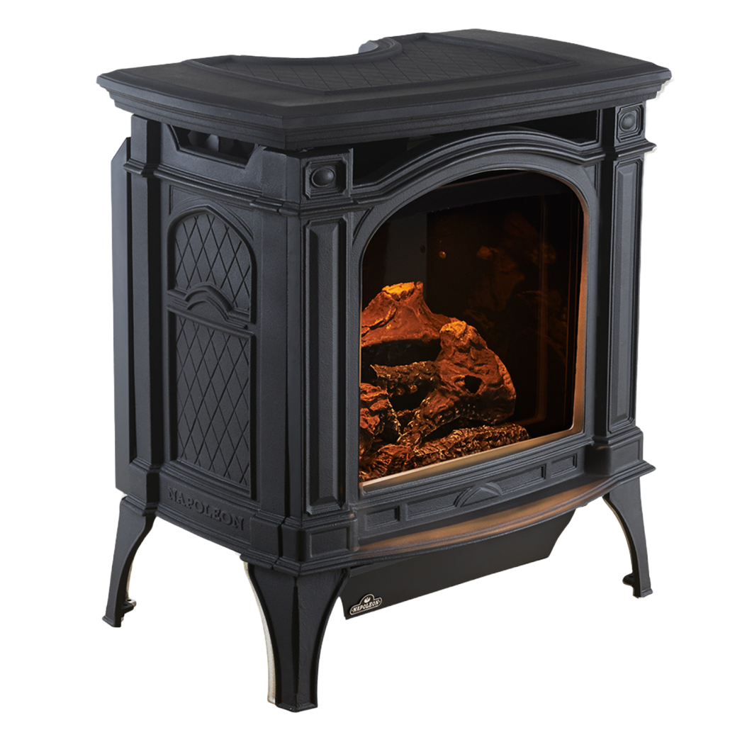 Crafted in durable and heat-radiating cast iron, the Napoleon Bayfield Direct-Vent Stove features a metallic black finish that will add drama and warmth to any home.