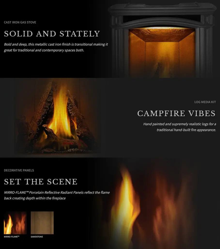 More than just a reliable heat source, the cast iron Castlemore Direct-Vent Stove is a beautiful addition to any space. Traditional European-styling, black metallic finish, slender stature, and charming curves both draw the eye and allow the Castlemore to blend seamlessly into its surroundings.