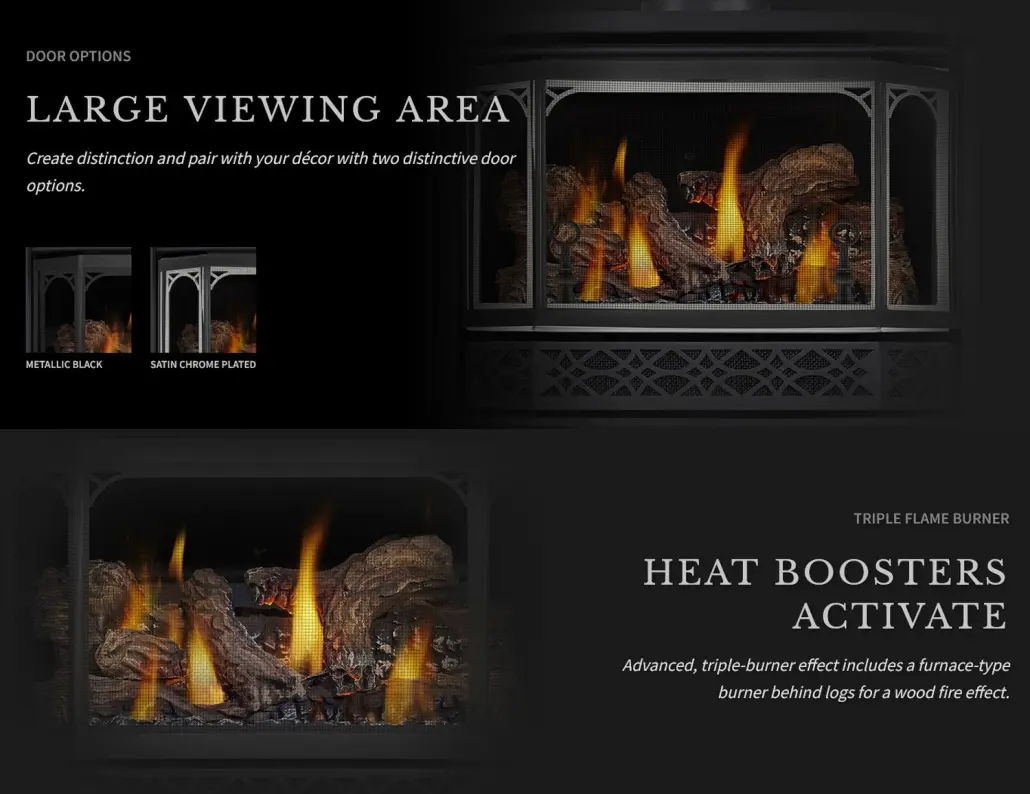 The electronic ignition system offers innovative control and start-up options. Plus, the 50% heat/flame adjustment and optional remote control offer versatile control options for maximum comfort.
