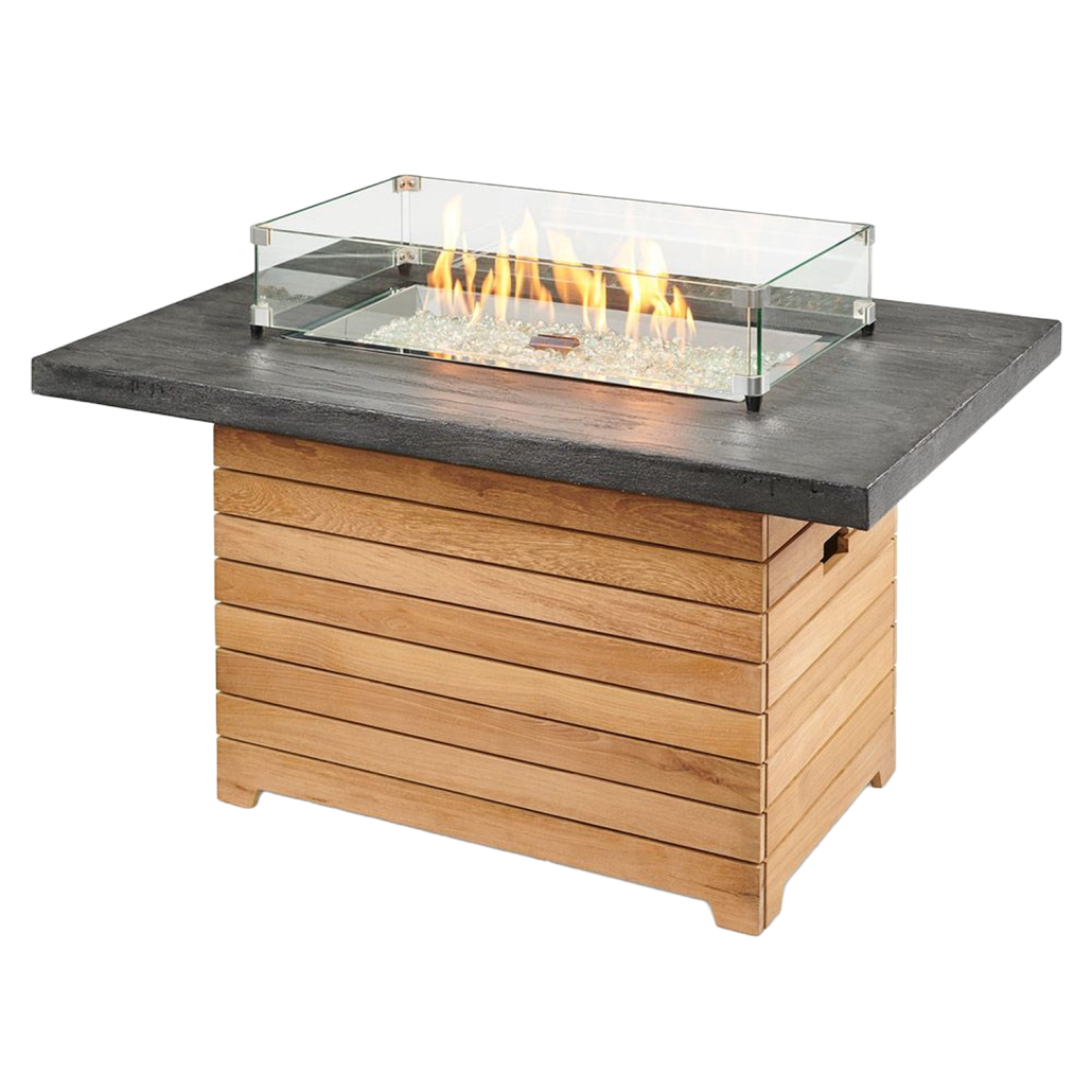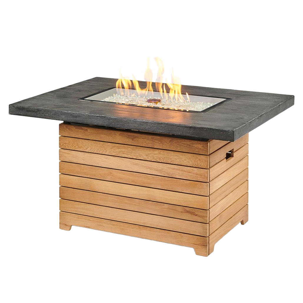 The Outdoor GreatRoom Company “Darien” Fire Pit Table is a high-quality fire feature with a contemporary design. This beautiful piece features a Grade-A teak base and aluminum top. (Optional Everblend concrete top is available). It is truly the perfect focal point for your patio space.